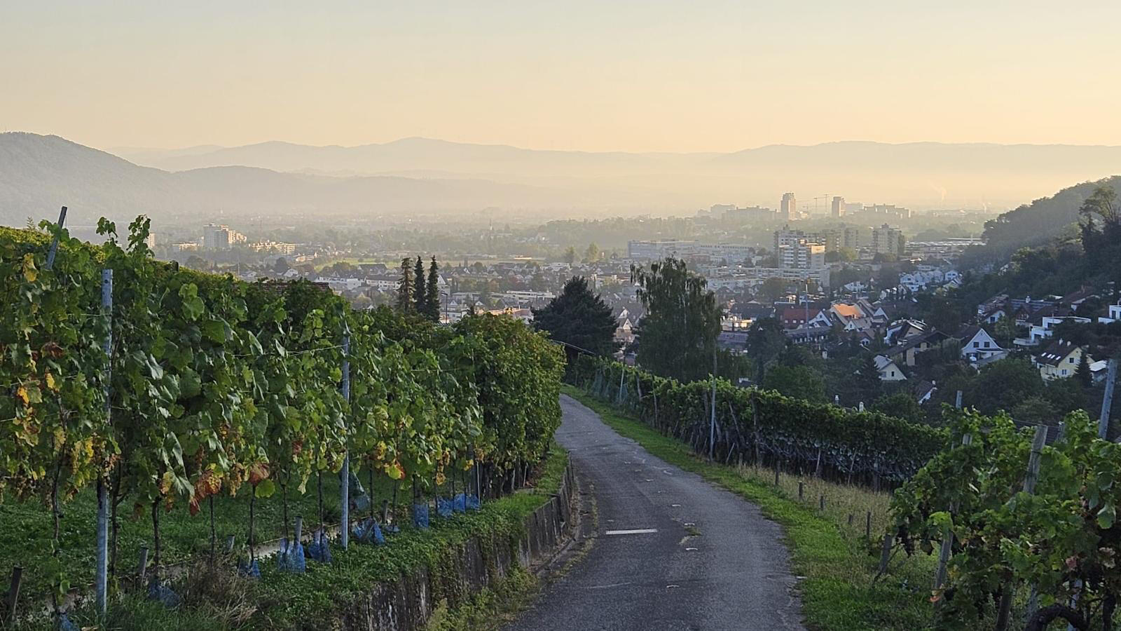 Unser Rebberg liegt oberhalb von Pratteln, am Nordrand des Tafeljuras – sonnig, ruhig, mit weitem Blick über die Oberrheinische Tiefebene bis in den Schwarzwald und die Vogesen.Unsere Pinot-Noir-Trauben wachsen hier auf kalkhaltigem Boden – in einem Klima, das wie gemacht ist für Wein mit Tiefe und Charakter.
