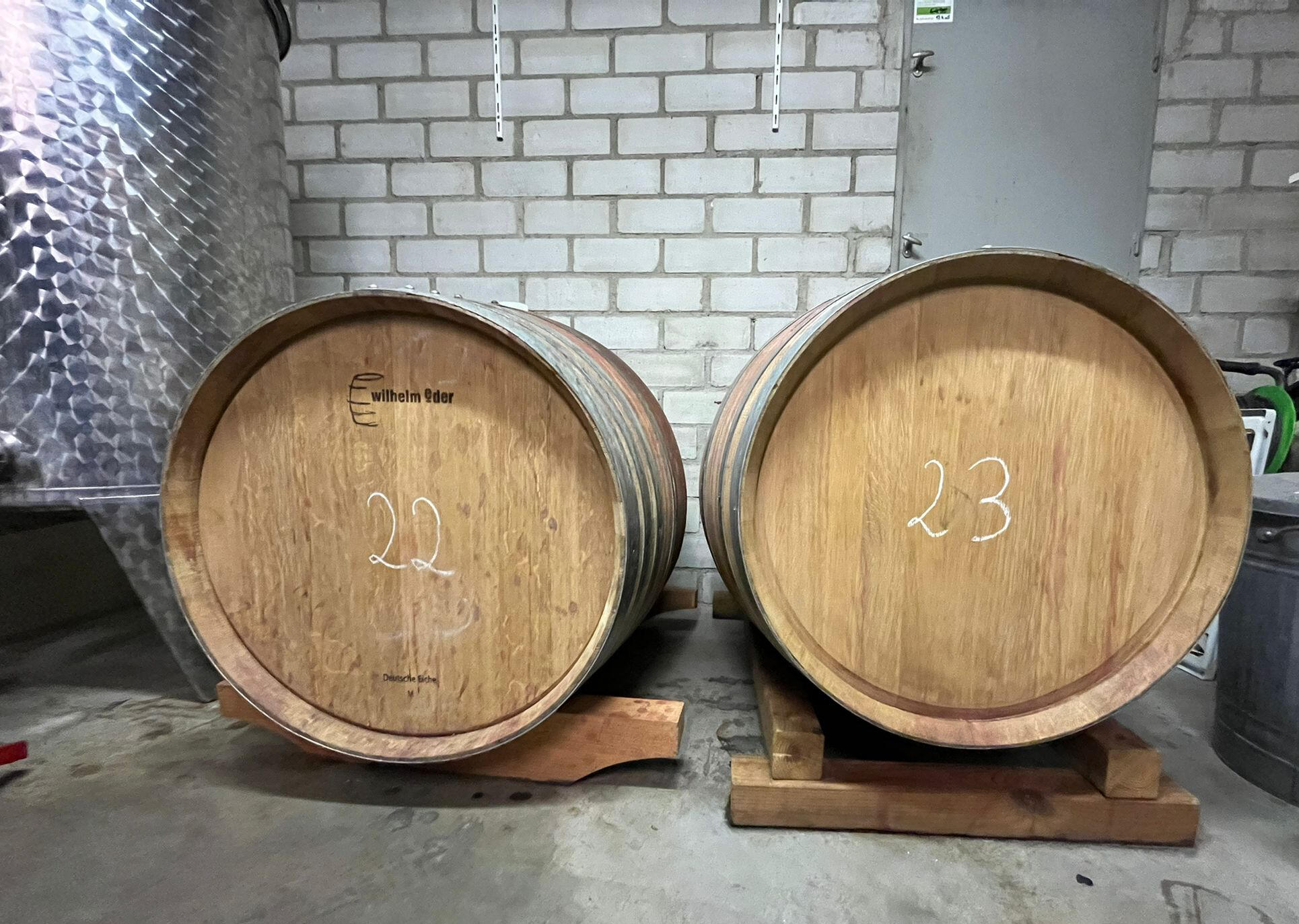 Der junge Wein lagert 24 Monate im Barrique aus deutscher Eiche.Danach wird er abgefüllt – und jede Flasche bekommt ihren Korken, ihr Etikett, ihren letzten Schliff – von Hand.Kein Wein verlässt unseren Keller, ohne dass er durch unsere Hände gegangen ist.